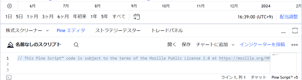 ●「Pineエディタ」を選択すると、プログラミングのコードを書いて自分独自のインジケーターを作ったり、自分独自の売買ルールを作ってバックテストをして、その売買ルールが使えそうかどうかを検討することができます。詳しいことは別途、解説していきます。