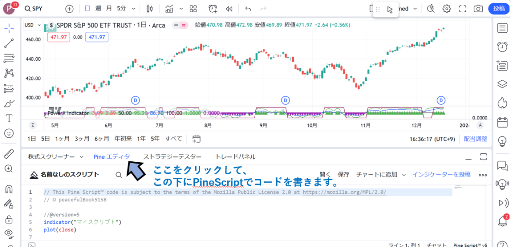 それではPineScriptでコードを書くにはどうしたらよいでしょうか?